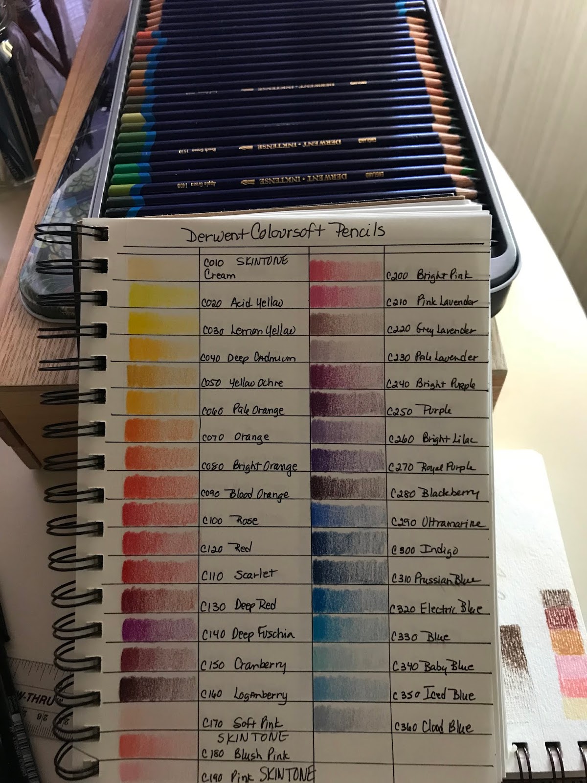 I also wanted to do a color chart for my Derwent Coloursoft Pencils.