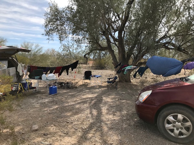 We hung out and waited like vultures for my favorite campspot in the Hi Jolly park to become vacant this morning, and moved right in! Once we were settled in, it was laundry day!