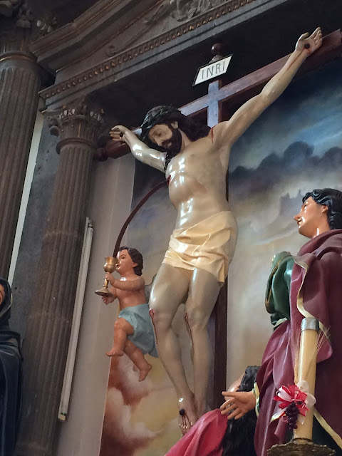 Here are a few of the offerings left for the Virgin on the wall of the church. I found these online. The story behind the offering is found below the picture the person has painted.
