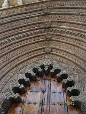 The most important monuments in Estella are on the edge of town. The Iglesia de San Pedro de la Rúa is built on the top of a cliff and features a Mudéjar-influenced, sculpted doorway.