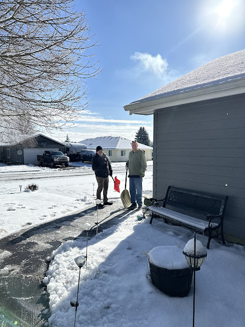 One day last week I heard a noise outside. It had been snowing all night. I went to the front door and opened it and there were two smiling men from my church, busy shoveling the snow from my walkway! That really made my heart happy - to know people do care about me. It was such a good feeling!